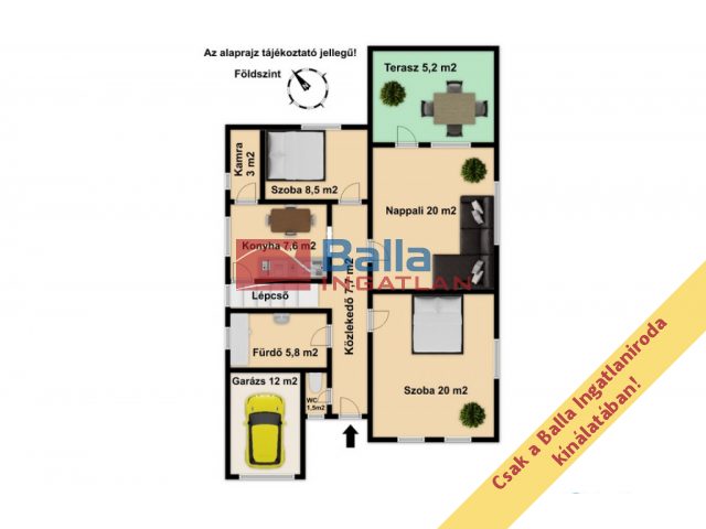 Egyéb tulajdonságok: tehermentes, loggia (5 m²), terasz (27 m²), szuteren (97 m²), kamra, külön wc, garázs