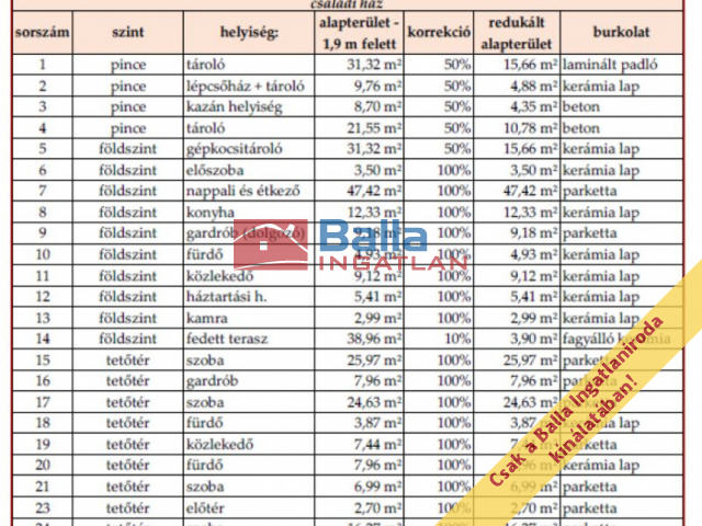 Tároló: 31,32 m² (jelenleg hobbiszobaként használt)