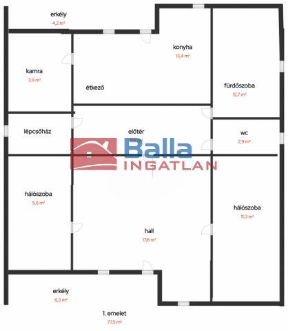 Egyéb tulajdonságok: erkély (10 m²), terasz (10 m²), hall, szuteren (86 m²), kamra, külön étkező, külön wc, garázs, zárt autóbeálló