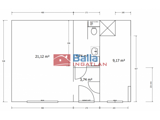 38 m² terület 1 + 1 félszoba