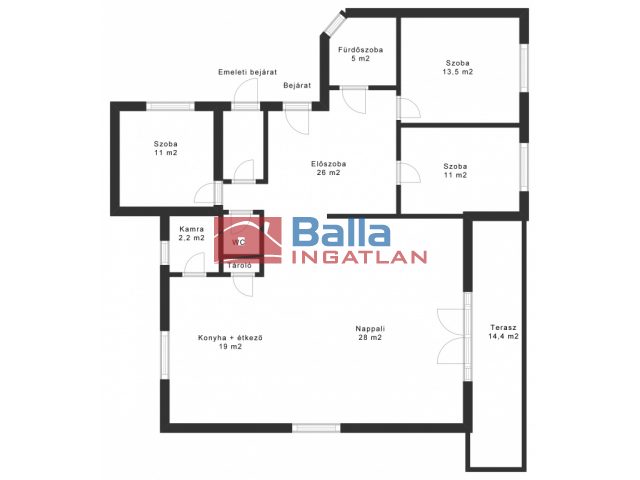 Egyéb tulajdonságok: tehermentes, azonnal költözhető, terasz (14 m²), kamra, külön étkező, külön wc, garázs