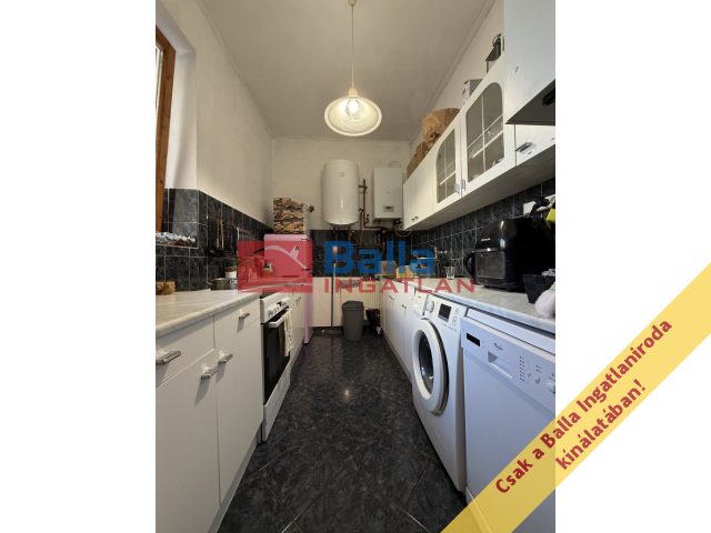 A ház az 1922-ben épült, többször felújították. A lakásba lépcsőn jutunk fel, az előszobával szemben helyezkedik el a nagy ablakos konyha konyhabútorral, villanytűzhellyel, mosogató géppel felszerelt, a mosógép is itt kapott helyet. A nappali és az innen nyíló szoba nyugati fekvésű, világos, nem látni be az utcáról. A kisebbik szoba a bejárat mellett helyezkedik el. A fürdőszoba mosdóval, káddal felszerelt, a toalettel egy helységben kapott helyet.