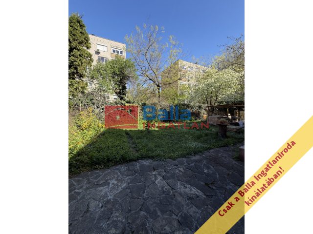 Eladóvá vált egy 62 m2 lapterületű tégla építésű, földszinti kertkapcsolatos házrész. A telek mérete 580 m2, ebből 290 m2 tartozik ehhez a házrészhez,1/4 tulajdonrész.