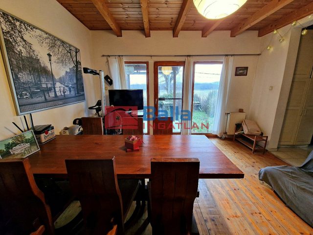 A ház jelenlegi állapotában is lakható: nappali, hálószobák, konyha és fürdőszoba alkotják. A belső térben a természetes faanyag dominál, a nappaliból pedig a kandalló melegénél gyönyörködhetünk a Duna látványában.