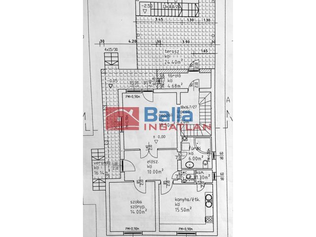 Egyéb tulajdonságok: tehermentes, erkély (10 m²), terasz (24 m²), gardróbszoba, kamra, külön wc
