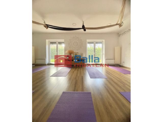 A telken található egy különálló kb.68m2-es épület,pazar méretű ablakokkal, jelenleg exkluzív közösségi/jógatér funkcióval.