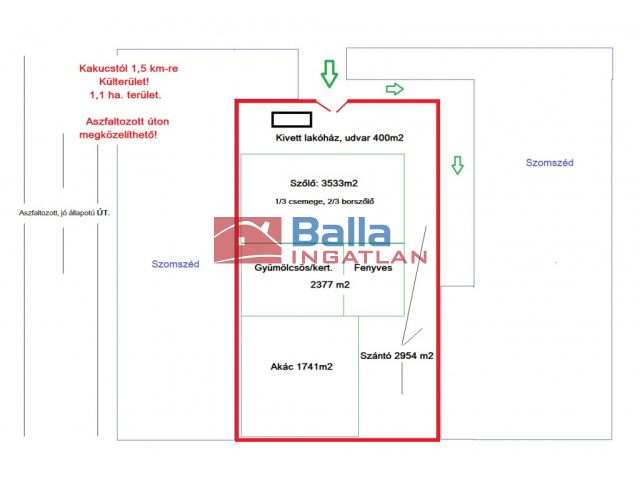 - Telekterület 11000 m²
