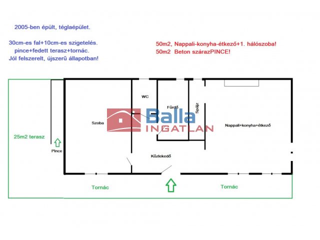 - az épület 2005-ben épült, 30 cm-es Porotherm falazat+ 10 cm homlokzati hőszigeteléssel.