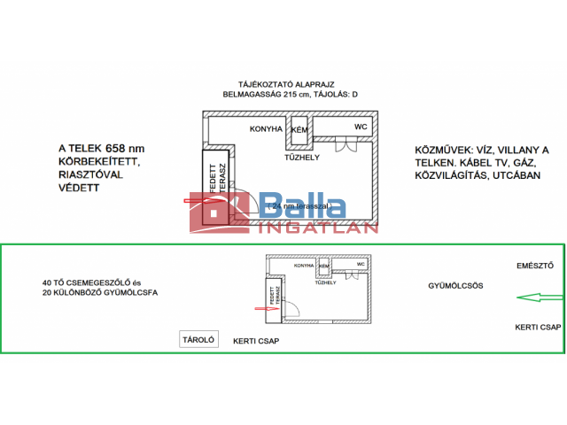 Extrák: emésztő, két kerti csap, riasztórendszer, körbekerített