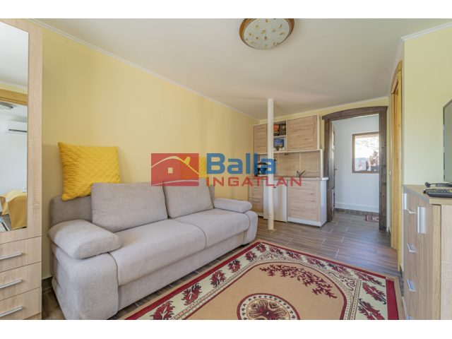 Felső szinten külön bejárattal megközelíthető a két db apartman 97,7 m2 területtel. Az alsó szinten vendéglátás céljára is kialakítható hangulatos pince 33,6 m2 és 108,92 m2-en.