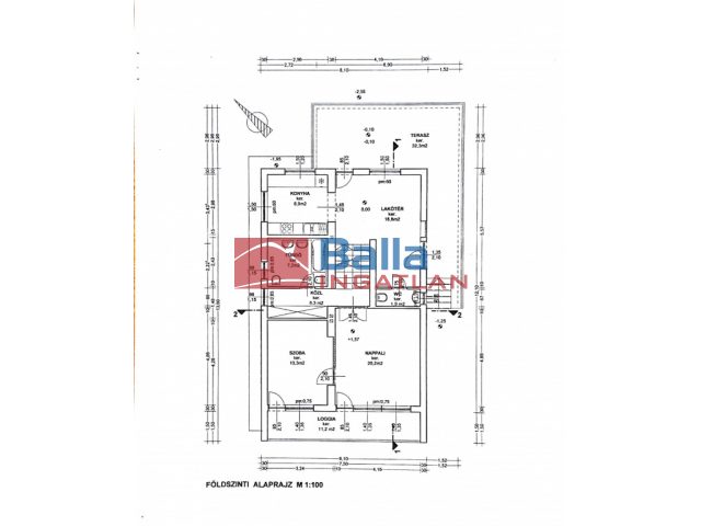 Egyéb tulajdonságok: tehermentes, azonnal költözhető, terasz (32 m²), pince, külön wc, garázs, zárt autóbeálló, utcai parkolás