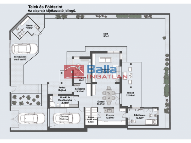 Egyéb tulajdonságok: terasz (30 m²), kamra, garázs