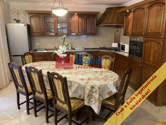 A dupla telek kőfallal körbekerített, így kellő intimitást ad. A telken található épület 130 m2, mely alatt pince is van. A ház előregyártott könnyűszerkezetes technológiával épült és hungarocell szigetelést kapott. Itt említjük, hogy ennél fogva kiváló energetikai mutatókkal rendelkezik, melyről személyesen készséggel tájékoztatjuk! Elrendezését tekintve a földszinten 45 m2-es nappali cserépkályhával várja új tulajdonosát, de az amerikai konyhás étkező is itt kapott helyet. A földszinten egy hálószoba, illetve egy fürdőszoba is rendelkezésre áll. Az emeleti szinten 3 különnyíló szoba ( 2 erkélyes), valamint egy fürdőszoba került kialakításra! Fűtés tekintetében vezetékes gáz kombi kazánnal, radiátoros hőleadókkal és padlófűtéssel, de itt említjük a klímákat, melyek a nappaliban és szobánként értendőek külön hőszivattyús fűtéssel (-25 C fokig helyt állnak) .