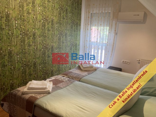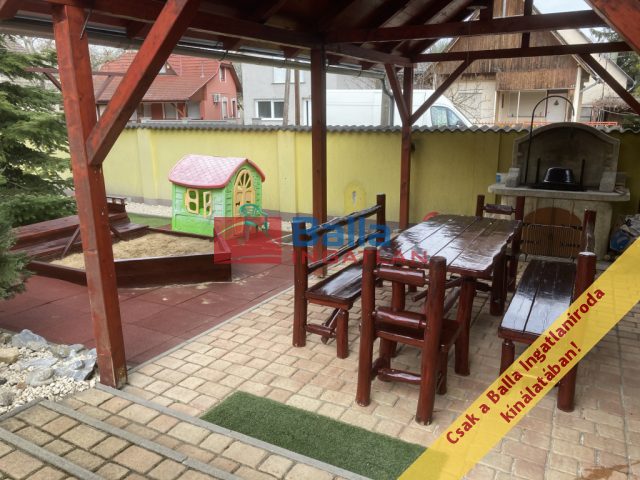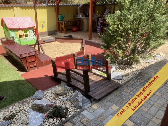 A kertben több szabadidős tevékenység is rendelkezésre áll: jakuzzi, kerti óriás sakk, kerti sütögető ( 8 személyes szaletlivel), gyermekeknek homokozó, stb. Az udvar részben térkövezett, igényes, rendezett!