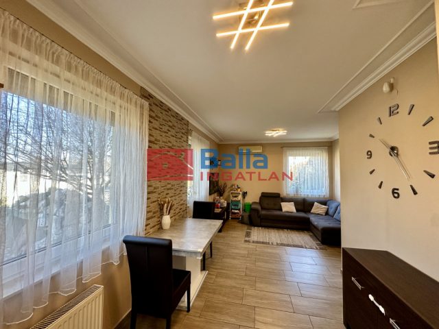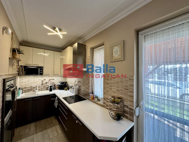 - Amerikai konyhás nappali (28,5 m²): Világos, klímával felszerelt közösségi tér. A konyha újszerű bútorral és beépített minőségi gépekkel (mosogatógép, sütő, indukciós főzőlap, elszívó) rendelkezik.