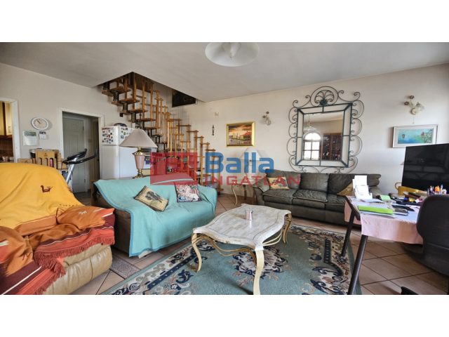 Private apartment (ground floor: living room, kitchen, bathroom, private terrace; upper floor: 3 rooms, 2 bathrooms, panoramic balcony, walk-in closet, 2-car garage)