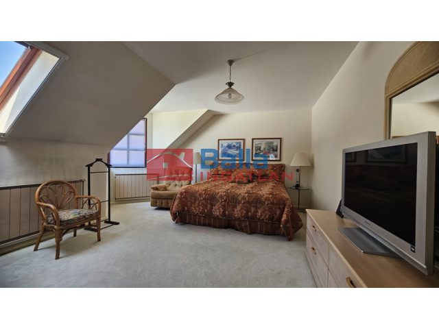 Appartement privé : RDC avec salon, cuisine, salle de bain, terrasse ; étage avec 3 chambres, 2 salles de bain, balcon panoramique, dressing, garage pour 2 voitures