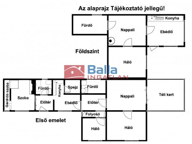 A felső szint 210 nm-es 2 külön bejárattal rendelkezik